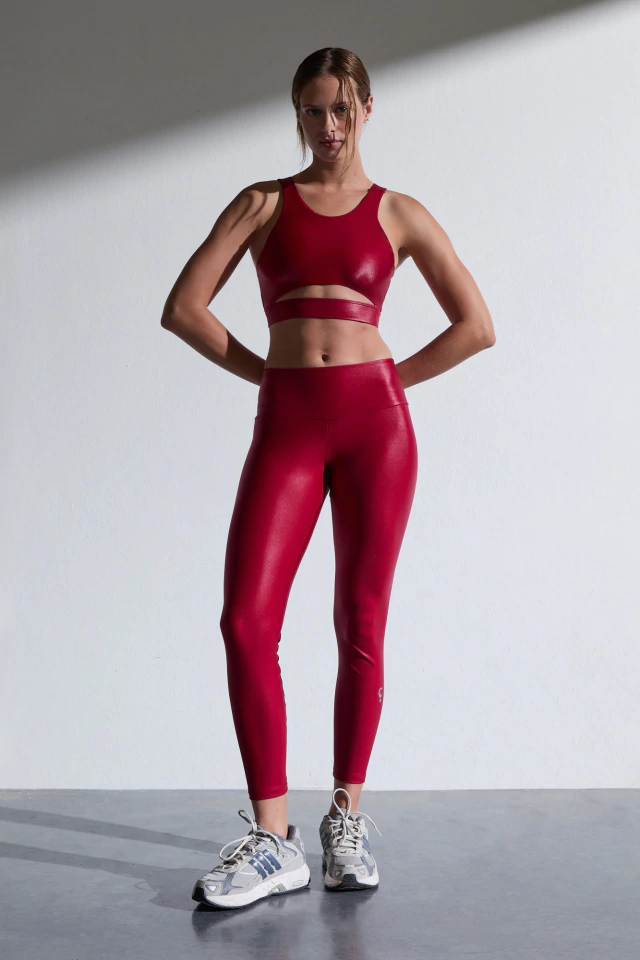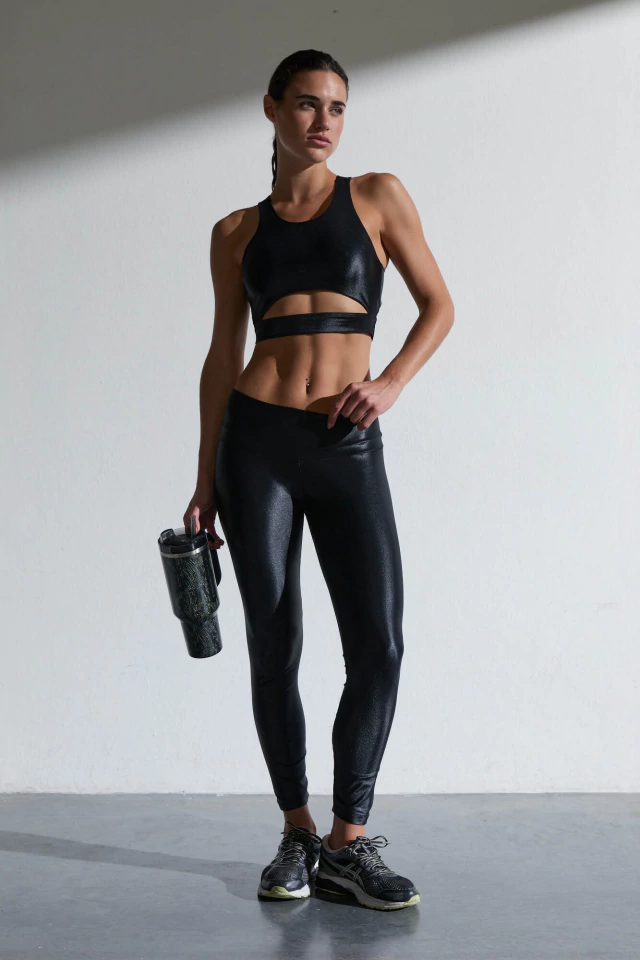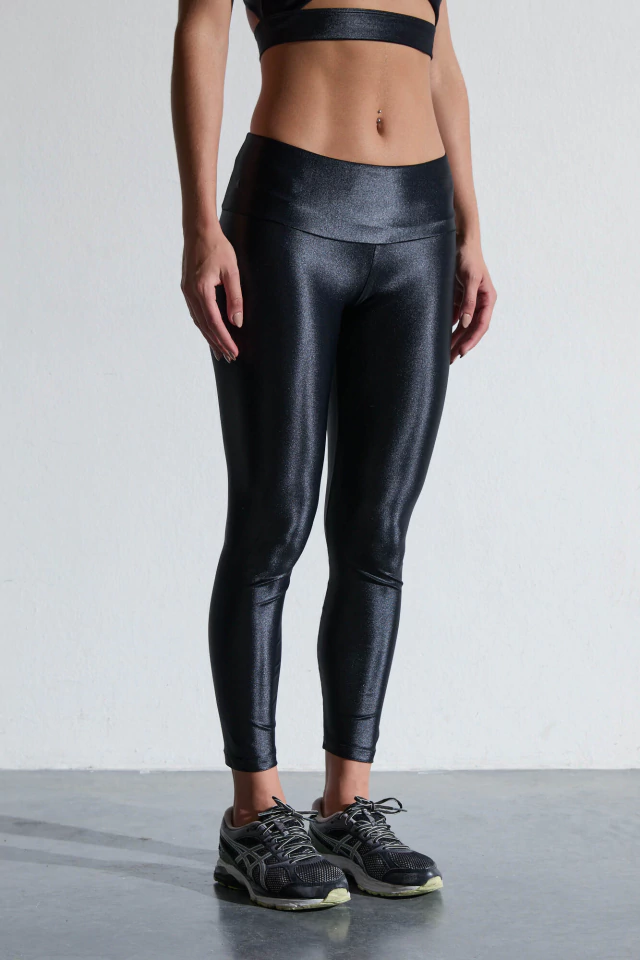 CALZA CON CINTURA ALTA CONFECCIONADA EN LYCRA CIRE. DETALLE DE ESTAMPACIÒN CL EN COSTADO EXTERNO DE LA PIERNA.