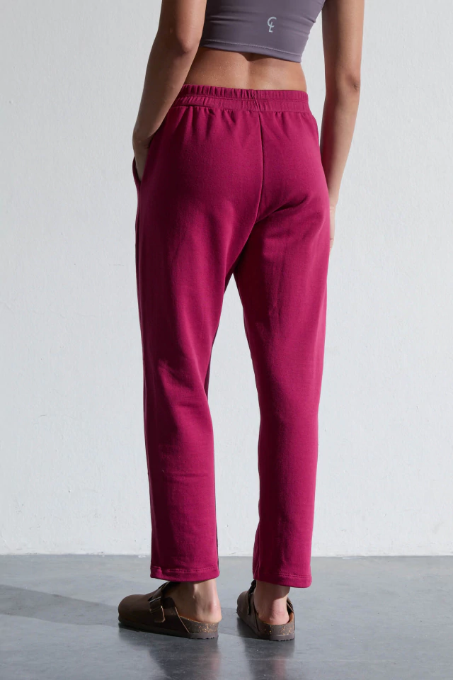 PANTALÓN DE FRISA CON CINTURA ELÁSTICA Y PINZAS. BOLSILLOS EN LATERALES. DETALLE DE CL BORDADO.