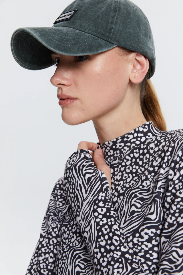 POLERA BAJA DE MICROFIBRA ESTAMPADA. CON ABERTURA EN MANGAS PARA ANCLAR EL PULGAR. DETALLE DE GRIFA "CLASS LIFE".