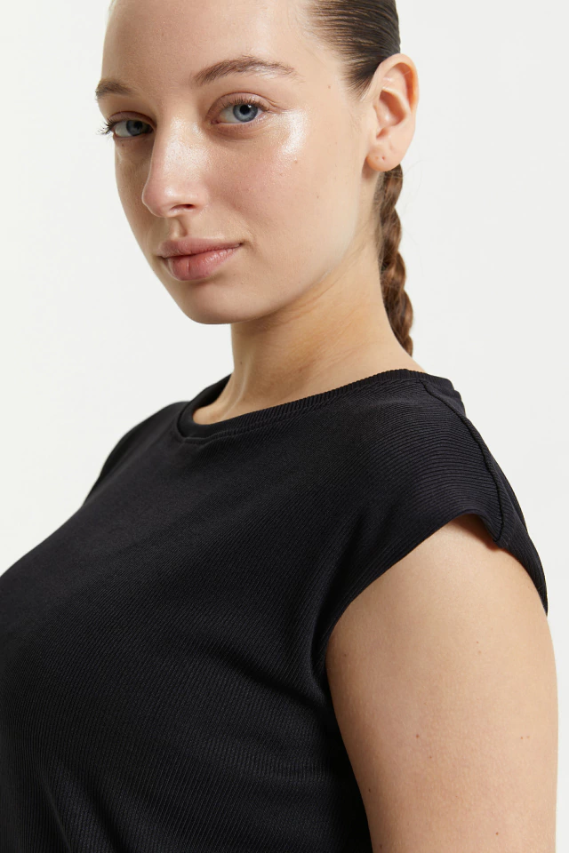 REMERA SIN MANGAS, AMPLIA, CON CUELLO REDONDO Y CONFECCIONADA EN MORLEY.