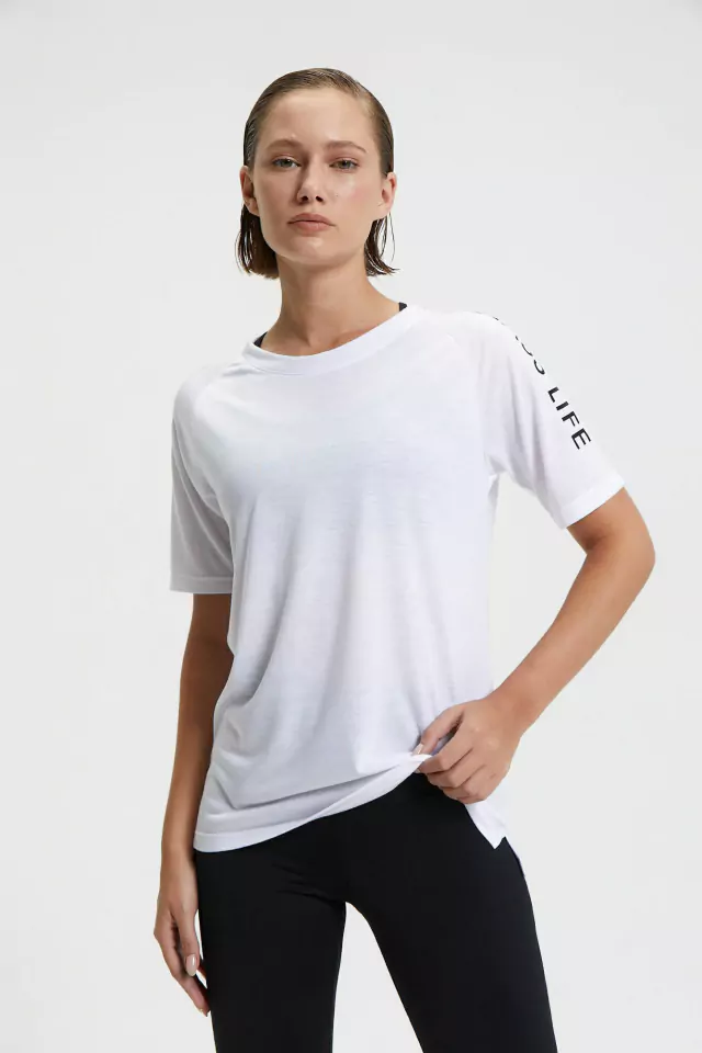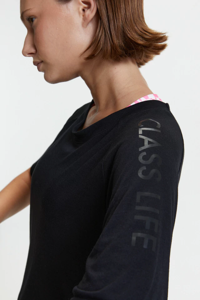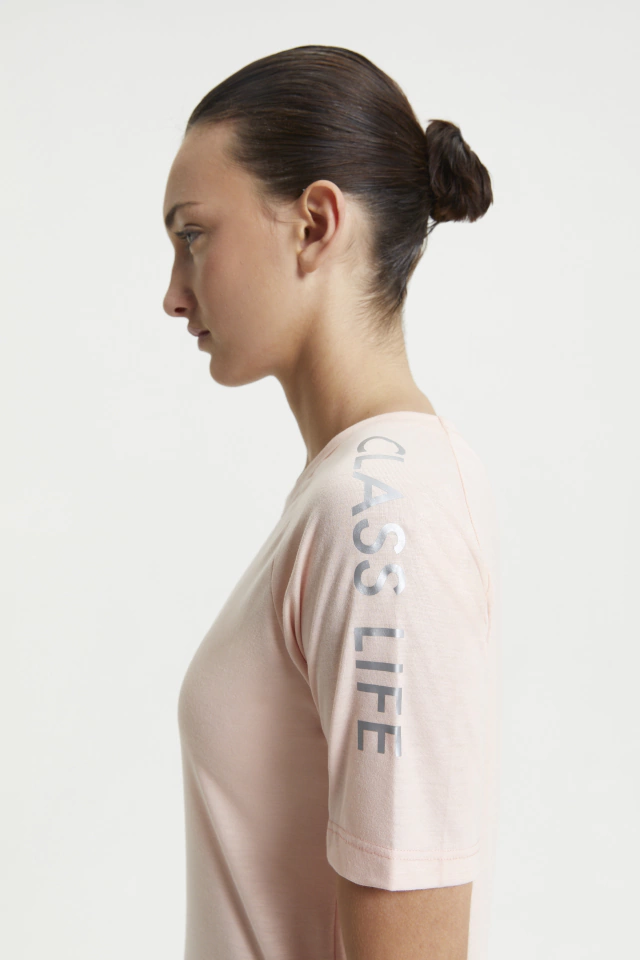 REMERA DE MANGA CORTA Y CUELLO REDONDO DE ALGODÓN. DETALLE DE ESTAMPA CLASS LIFE EN MANGA.