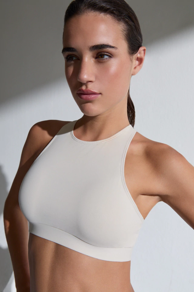 TOP DEPORTIVO CON CUELLO REDONDO Y BAJO BUSTO CON ELÁSTICO. DETALLE DE ESTAMPACIÓN CL.