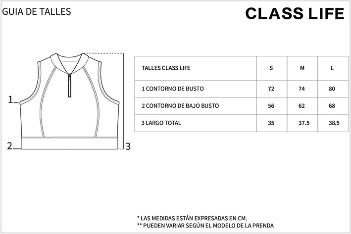 TOP DEPORTIVO CON CUELLO MAO Y CIERRE. LLEVA ELÁSTICO EN BAJO BUSTO. CON VIVO A CONTRATONO Y COPAS EXTRAÍBLES. DETALLE DE ESTAMPACIÓN CL.